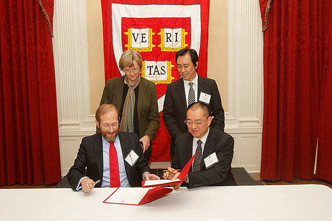 哈佛大学与恒大集团正式签署协议,后排左为哈佛