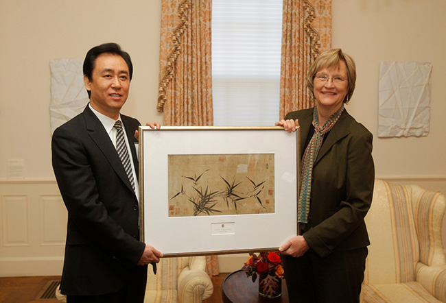 仪式上,福斯特校长与许家印教授互赠了官方及私人礼品,艾伦·嘉伯副校长、夏海钧总裁代表双方签署了协议。仪式后,艾伦·嘉伯副校长代表哈佛校方宴请了许家印一行。